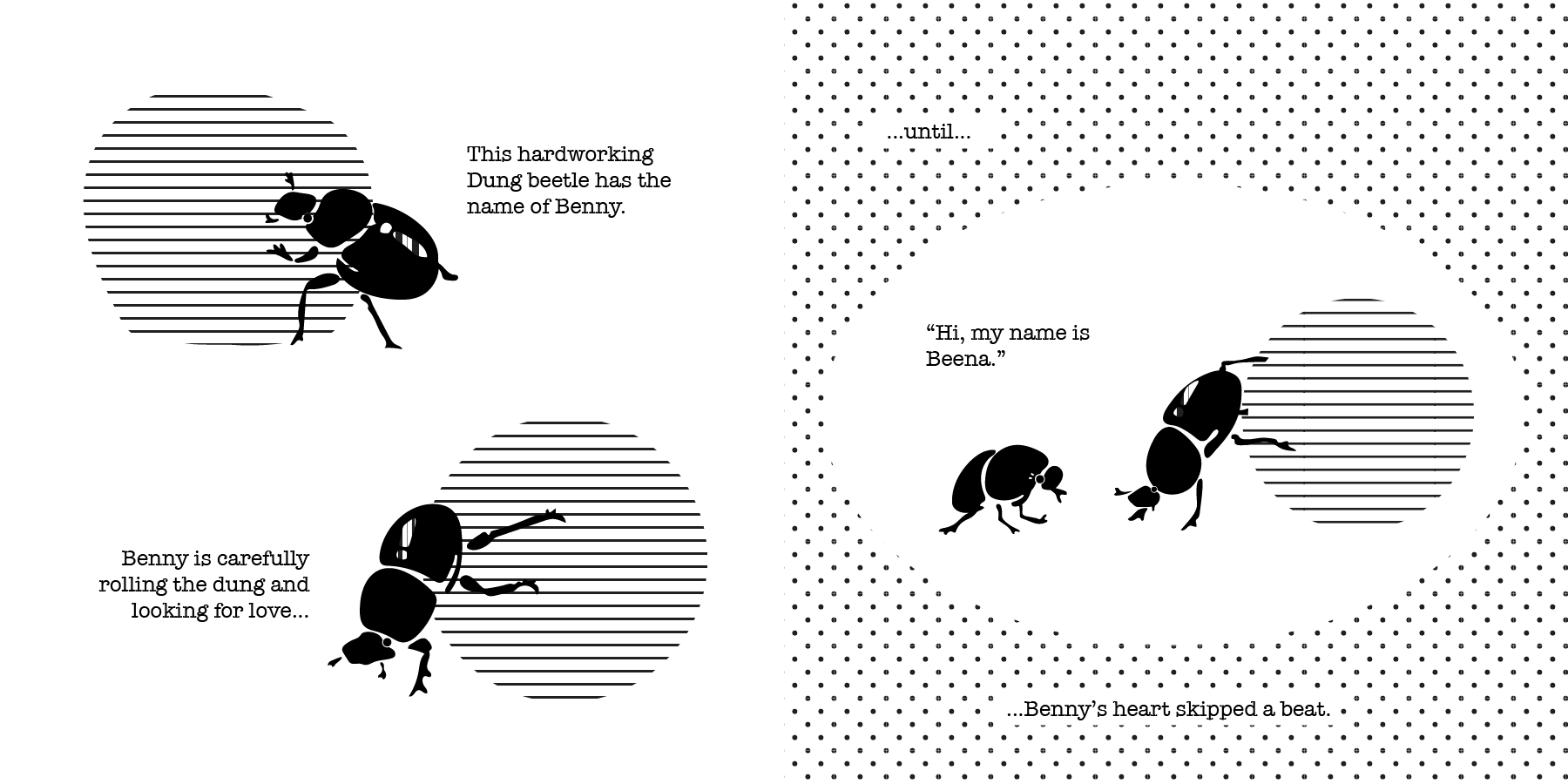 Made for a course pertaining to insect morphology and entomology, this book was made to explain the life cycle and the anatomy of dung beetles to children.